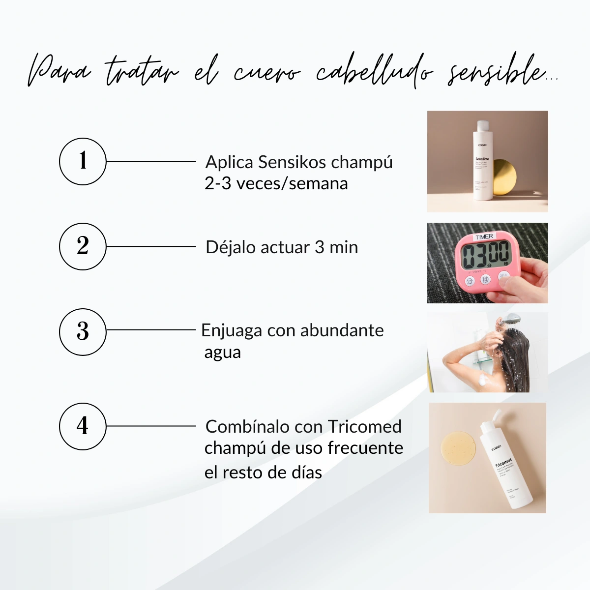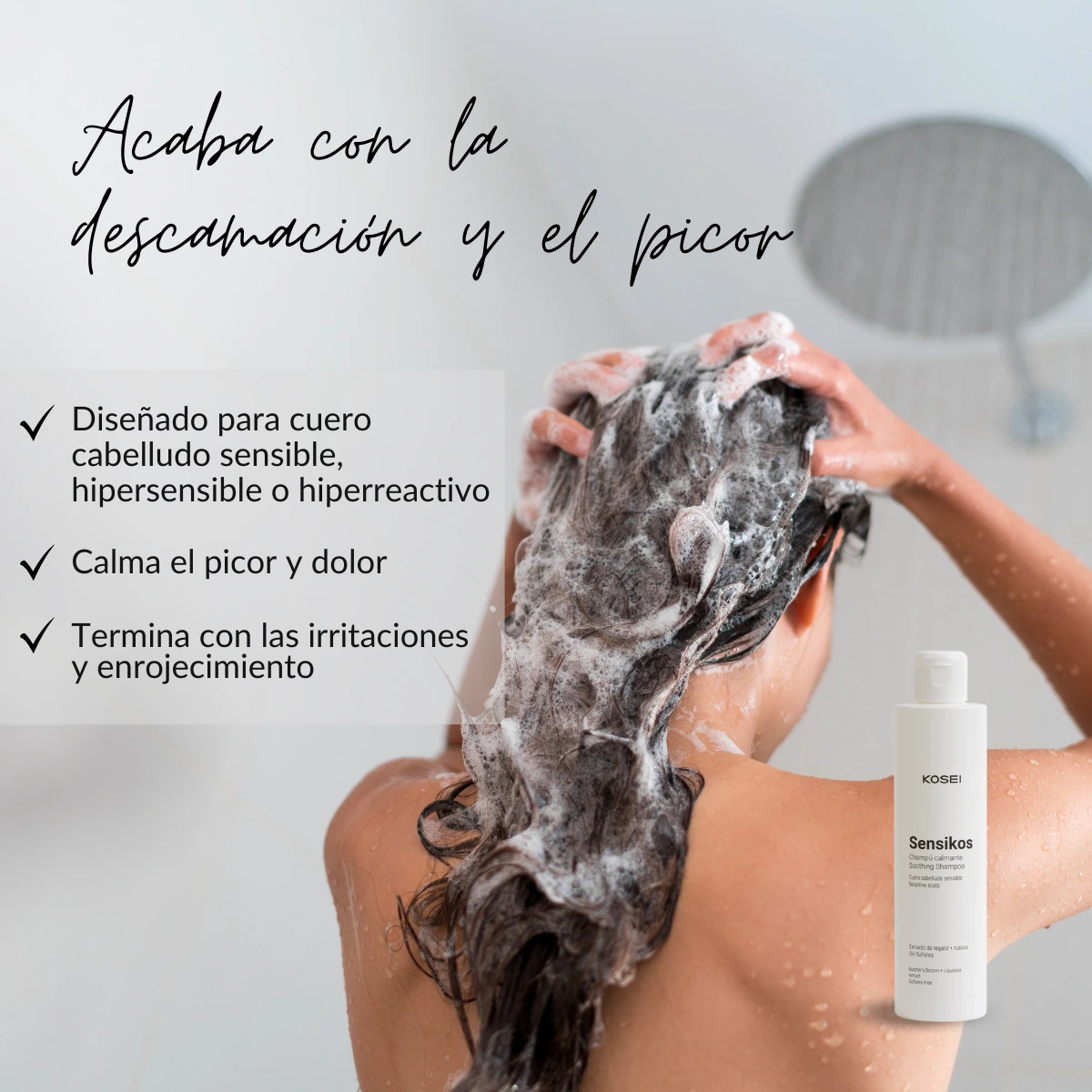 SENSIKOS es un champú para cuero cabelludo sensible de KOSEI, elaborado con una formulación específica para calmar las irritaciones, el enrojecimiento, la sensación de tirantez, el picor y/o el dolor. La solución que buscabas para acabar con las molestias habituales de un cuero cabelludo sensible, hipersensible o hiperreactivo.